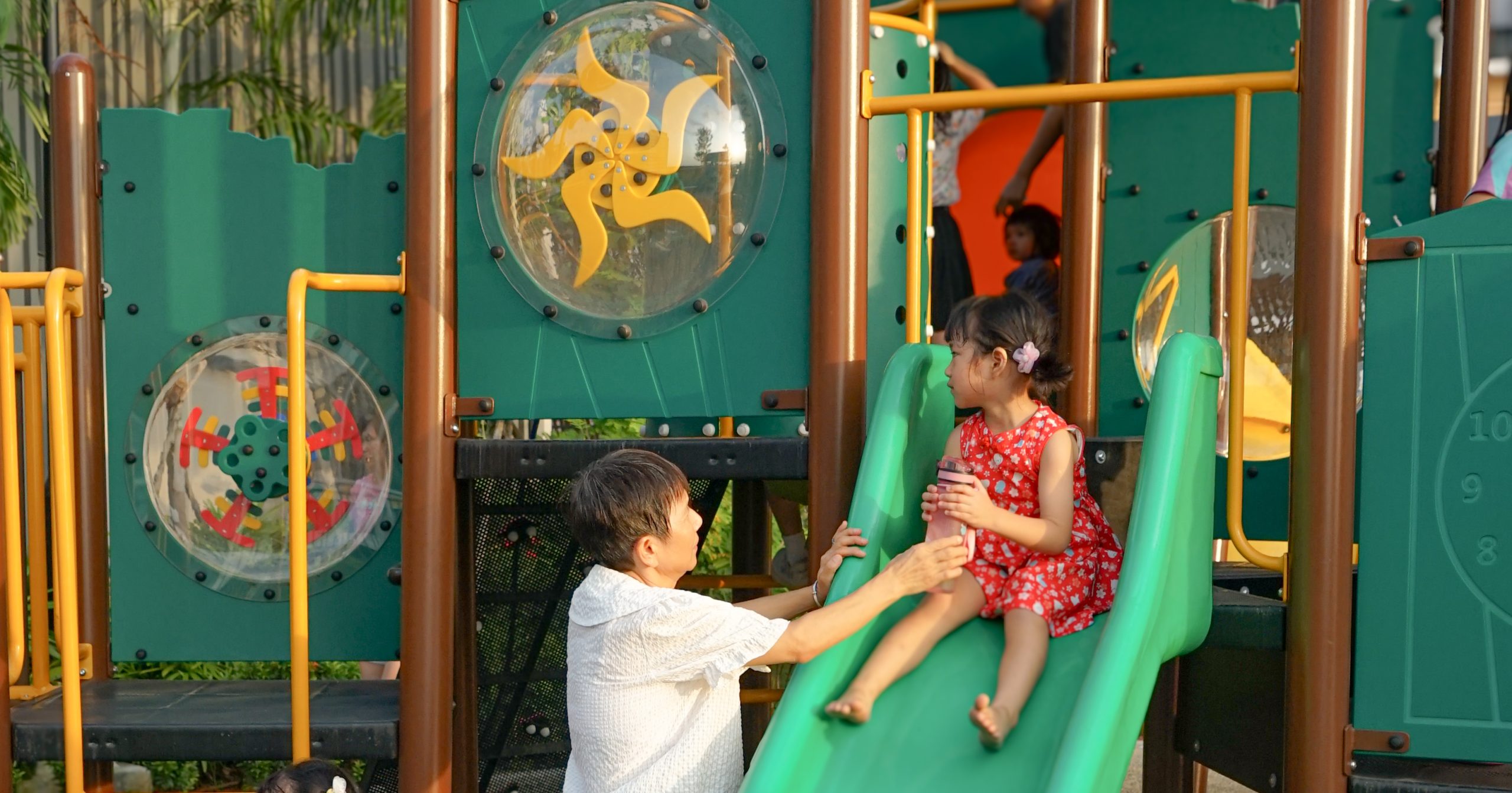 We designed Anchorvale Village’s playgrounds to encourage active and imaginative play through diverse structures. The village-themed play area fosters creativity, while the webbed climbing structure challenges coordination and problem-solving. Carefully planned layouts and shaded areas ensure a safe and comfortable experience for children.