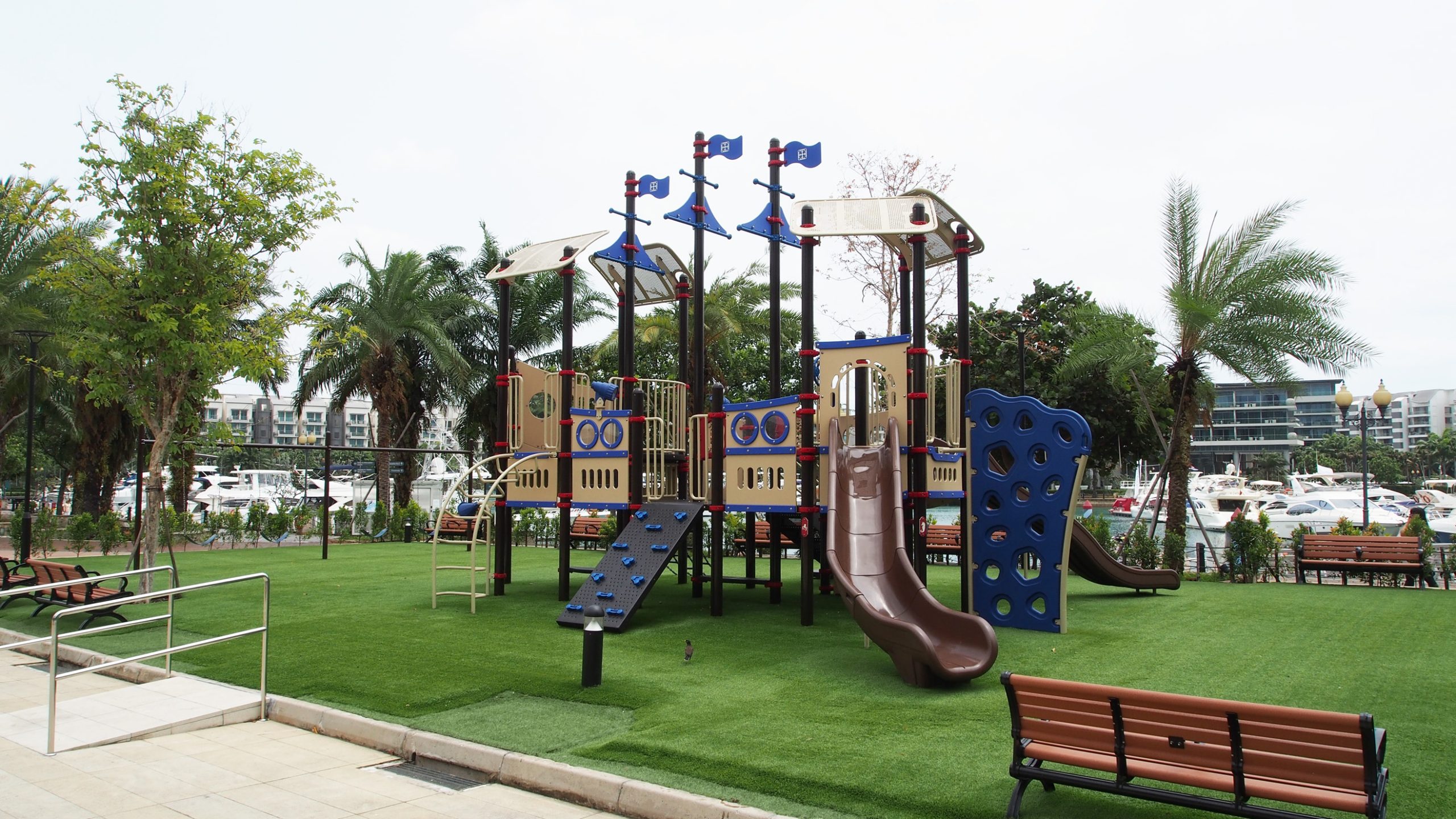 Located at Sentosa Cove Arrival Plaza, this nautical-themed playground blends luxury with lively family fun. The boat-inspired play structure, swings, Spin Tower, and Tri Spring Fling invite children to climb, spin, and explore in a coastal setting. Designed to spark imagination and movement, the playground captures the spirit of seafaring adventure while offering a welcoming, energetic atmosphere for families to enjoy by the water.